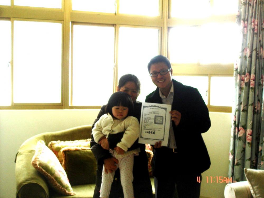 與得標人合影(交付權狀及全家合影)